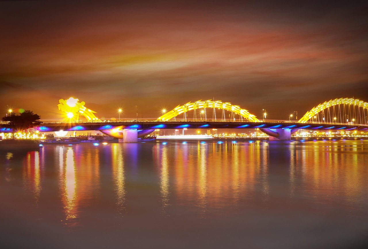 저녁에는 **용다리(Dragon Bridge)**로 이동해 야경을 즐겨보세요.